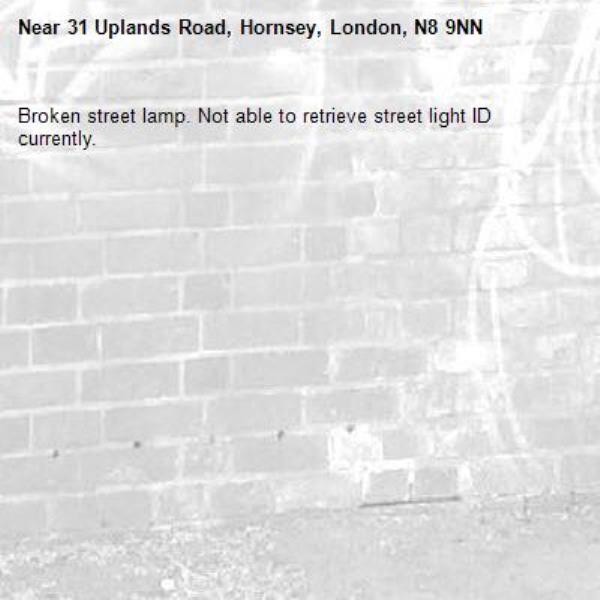 Broken street lamp. Not able to retrieve street light ID currently.