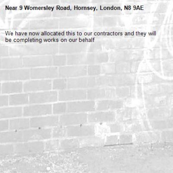 We have now allocated this to our contractors and they will be completing works on our behalf-9 Womersley Road, Hornsey, London, N8 9AE 13/11/2025 08:36 We have now allocated this to our contractors and they will be completing works on our behalf